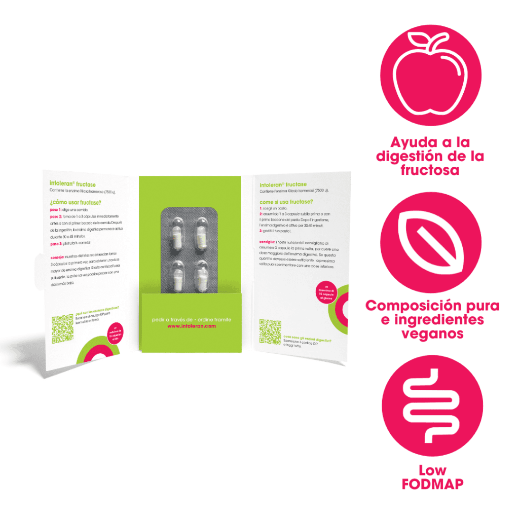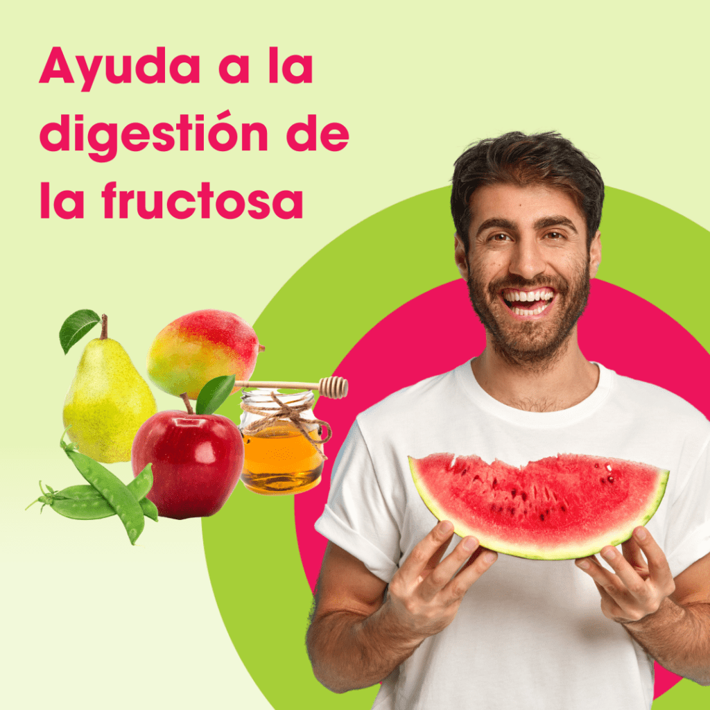 Fructose contiene la enzima digestiva Xilosa Isomerasa, que ayuda a la digestión del FODMAP fructosa (azúcar de la fruta).